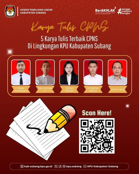 Subang – Dalam rangka pelaksanaan Orientasi Tugas (Ortug) di Komisi Pemilihan Umum (KPU) Provinsi Jawa Barat, seluruh peserta diberikan tugas untuk menyusun opini inspiratif yang mencerminkan budaya kerja demokratis di lingkungan KPU. Satuan Kerja (Satker) KPU Kabupaten Subang mengikutsertakan 5 (lima) Calon Pegawai Negeri Sipil (CPNS) dalam kegiatan Ortug yang dilaksanakan pada tanggal 4–5 Juni 2025 di KPU Provinsi Jawa Barat. Dari Kelima CPNS tersebut telah menghasilkan tulisan opini dengan tema beragam, namun secara konsisten merefleksikan tekad dan pemikiran generasi baru Aparatur Sipil Negara (ASN) dalam menjaga marwah demokrasi melalui integritas dan loyalitas. Berikut adalah nama dan Opini dari pemikiran mereka : Menjadi ASN KPU: Tanggung Jawab, Tantangan, dan Tekad Kami (Dadan Nurmaulana) “Transisi dari warga negara biasa menjadi Aparatur Sipil Negara (ASN) bukan sekadar perubahan status pekerjaan, melainkan transformasi nilai dan komitmen. Ini bukan sekadar pekerjaan, melainkan panggilan jiwa. Sebagai abdi negara, kita bertanggung jawab besar untuk memastikan demokrasi berjalan dengan integritas, transparansi, dan keadilan.“ Membangun Profesionalisme Sejak Dini di KPU Jawa Barat (Deta Andriyan Fadita) “Etika kerja yang baik merupakan fondasi utama dalam membangun profesionalisme. Mulai dari hal-hal kecil seperti ketepatan waktu, disiplin, dan tanggung jawab, semuanya dapat membentuk karakter profesional yang kuat. Terus belajar dan meningkatkan kemampuan serta pengetahuan merupakan langkah penting dalam membangun profesionalisme. Membaca peraturan dan undang-undang tentang kepemiluan, dapat dijadikan pedoman dalam bekerja di KPU.” Menjadi ASN KPU: Tanggung Jawab, Tantangan, dan Tekad Kami (Fathiya Rahmah) “Setiap keputusan dan tindakan diambil secara cermat, transparan, dan bebas dari intervensi politik. Integritas kami bukan hanya slogan melainkan prinsip hidup yang harus dijaga setiap saat. Menjadi Aparatur Sipil Negara Komisi Pemilihan Umum adalah sebuah kehormatan, kami bukan hanya pekerja birokrasi tetapi juga penjaga demokrasi. Meski penuh tantangan, kami mempunyai tekad dan semangat pengabdian agar demokrasi di Indonesia bermartabat.” Sinergi, Disiplin, dan Transparansi: Budaya Kerja yang Kami Harapkan di KPU Jawa Barat (R. Raechan Shefa Aditya) “Dalam menjalankan tugas sebagai penyelenggara pemilu yang independen dan profesional, kami memandang pentingnya peneguhan budaya kerja yang berakar pada tiga nilai utama: sinergi, disiplin, dan transparansi. Sinergi merupakan kemampuan untuk bekerja bersama secara harmonis dan saling mendukung. Kami. Disiplin adalah sikap yang menunjukkan komitmen terhadap pekerjaan. Transparansi adalah keterbukaan dalam proses kerja. Kami percaya bahwa dengan membangun budaya kerja yang dilandasi sinergi, disiplin, dan transparansi, KPU Jawa Barat akan semakin kuat dalam menjalankan perannya sebagai penyelenggara pemilu yang jujur, adil, dan profesional.” Menjadi ASN KPU: Tanggung Jawab, Tantangan, dan Tekad Kami (Yanuar Caprio) “Sebagai ASN KPU, kami memikul Amanah yang sangat besar karena memastikan pemilu berlangsung jujur, adil, dan transparan. Setiap tahapan mulai dari pendaftaran pemilih, pencalonan, hingga penetapan hasil harus dilaksanakan dengan integritas dan netralitas yang tinggi. Memutuskan untuk menjadi Aparatur Sipil Negara (ASN) di Komisi Pemilihan Umum (KPU) bukan sekadar pilihan karir, melainkan komitmen untuk mengabdi pada demokrasi dan kedaulatan rakyat Indonesia. Hal ini merupakan perjalanan yang penuh tanggung jawab, tantangan, sekaligus kebanggaan”