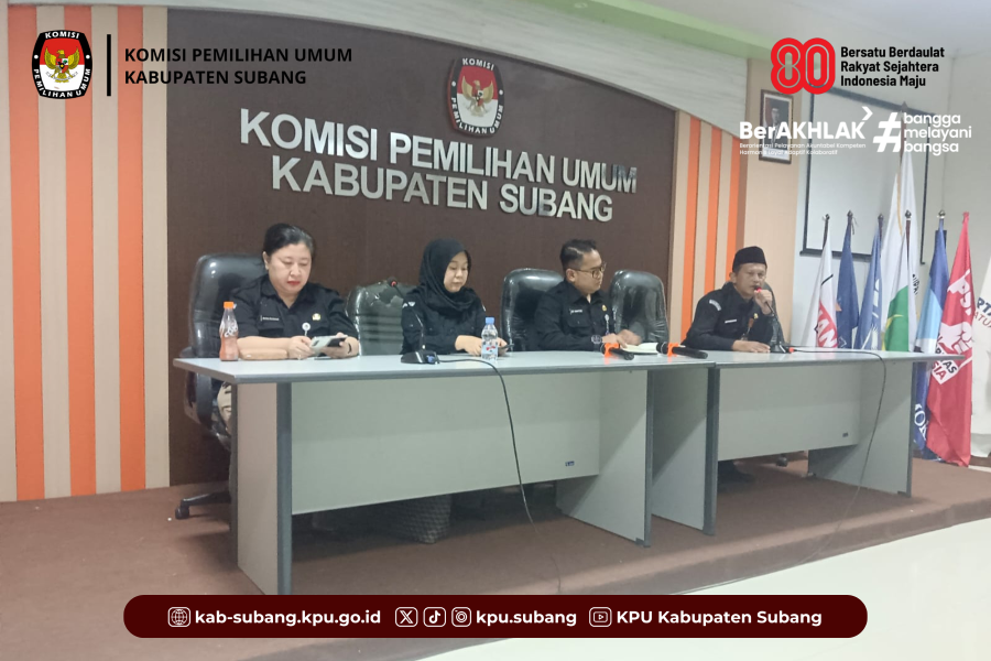Subang, 2 Oktober 2025 - Dalam rangka memastikan kualitas dan akurasi data pemilih, KPU Kabupaten Subang telah menyelenggarakan kegiatan Rapat Pleno Rekapitulasi Daftar Pemilih Berkelanjutan (DPB) Triwulan III Tahun 2025. Acara yang dilaksanakan di Kantor KPU Kabupaten Subang ini dihadiri oleh berbagai instansi terkait, termasuk Kodim 0605 Subang, Polres Subang, Bawaslu, Disdukapil, dan Dispemdes. Kegiatan ini bertujuan untuk memutakhirkan data pemilih, agar data yang digunakan dalam setiap tahapan pemilu dan pilkada di masa mendatang lebih akurat dan dapat diakses oleh semua pihak yang berkepentingan. Kegiatan ini merupakan langkah penting dalam memastikan kesuksesan pelaksanaan demokrasi yang transparan dan adil. Dalam rapat tersebut KPU Kabupaten Subang menetapkan Rekapitulasi Daftar Pemilih Berkelanjutan Kabupaten Subang dengan rincian sebagai berikut: Rekapitulasi Daftar Pemilih Berkelanjutan Triwulan III Tahun 2025 di Lingkungan Kabupaten Subang Dengan melibatkan berbagai pihak terkait, diharapkan proses Rekapitulasi Daftar Pemilih Berkelanjutan ini dapat berjalan dengan lancar, akurat, dan transparan, serta menghasilkan data pemilih yang valid untuk kepentingan penyelenggaraan pemilu dan pilkada yang lebih baik di masa mendatang. KPU Kabupaten Subang berkomitmen untuk terus memperbaiki sistem pemutakhiran data pemilih agar tercipta pemilu yang lebih demokratis dan inklusif. ....
