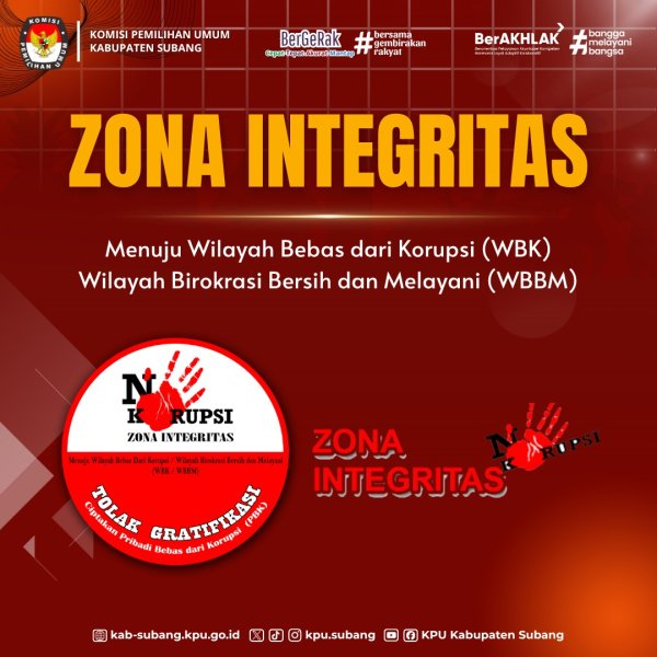 Subang - Komisi Pemilihan Umum (KPU) Kabupaten Subang berkomitmen kuat dalam mewujudkan tata kelola pemerintahan yang bersih, transparan, dan akuntabel melalui pembangunan Zona Integritas (ZI) sebagai bagian dari upaya reformasi birokrasi. Langkah ini merupakan bentuk nyata tekad KPU Subang untuk menjadi lembaga penyelenggara pemilu yang profesional, berintegritas, dan bebas dari praktik korupsi, kolusi, dan nepotisme (KKN). Apa itu Zona Integritas? Zona Integritas adalah predikat yang diberikan kepada instansi pemerintah yang pimpinan dan seluruh jajarannya memiliki komitmen untuk mewujudkan Wilayah Bebas dari Korupsi (WBK) dan Wilayah Birokrasi Bersih dan Melayani (WBBM). Predikat ini tidak hanya menjadi simbol, tetapi juga cerminan budaya kerja yang menjunjung tinggi nilai-nilai kejujuran, profesionalitas, dan pelayanan publik yang berkualitas. Komitmen KPU Kabupaten Subang Sebagai lembaga penyelenggara pemilu, KPU Kabupaten Subang menyadari pentingnya membangun sistem birokrasi yang bersih dan melayani untuk memperkuat kepercayaan publik terhadap proses demokrasi. Melalui penerapan enam area perubahan reformasi birokrasi, KPU Subang bertekad untuk terus melakukan perbaikan berkelanjutan, meliputi: Manajemen Perubahan – membangun budaya kerja yang adaptif, profesional, dan berorientasi pada pelayanan. Penataan Tata Laksana – menyusun prosedur kerja yang efisien, transparan, dan akuntabel. Penataan Sistem Manajemen SDM – mengoptimalkan pengelolaan sumber daya manusia yang kompeten dan berintegritas. Penguatan Akuntabilitas – memastikan setiap kegiatan memiliki ukuran kinerja yang jelas dan terukur. Penguatan Pengawasan – mendorong penerapan sistem pengendalian internal untuk mencegah penyimpangan dan pelanggaran. Peningkatan Kualitas Pelayanan Publik – memberikan pelayanan kepemiluan yang cepat, transparan, mudah diakses, dan bebas pungli. Tujuan dan Harapan Melalui pembangunan Zona Integritas, KPU Kabupaten Subang menegaskan tekadnya untuk: Menjadi lembaga yang bersih, bebas dari praktik KKN, serta menjunjung tinggi prinsip integritas. Meningkatkan kualitas pelayanan kepemiluan yang responsif, transparan, dan berorientasi pada kepuasan masyarakat. Membangun kepercayaan publik terhadap penyelenggaraan pemilu yang jujur dan adil. Menumbuhkan budaya kerja profesional dan disiplin di lingkungan KPU Subang. Penutup Pembangunan Zona Integritas di KPU Kabupaten Subang bukan sekadar kewajiban administratif, melainkan komitmen moral dan strategis dalam menjaga marwah demokrasi. Dengan semangat reformasi birokrasi, KPU Subang berupaya menjadi lembaga yang bersih, melayani, dan dipercaya masyarakat dalam setiap tahapan penyelenggaraan pemilu. ....