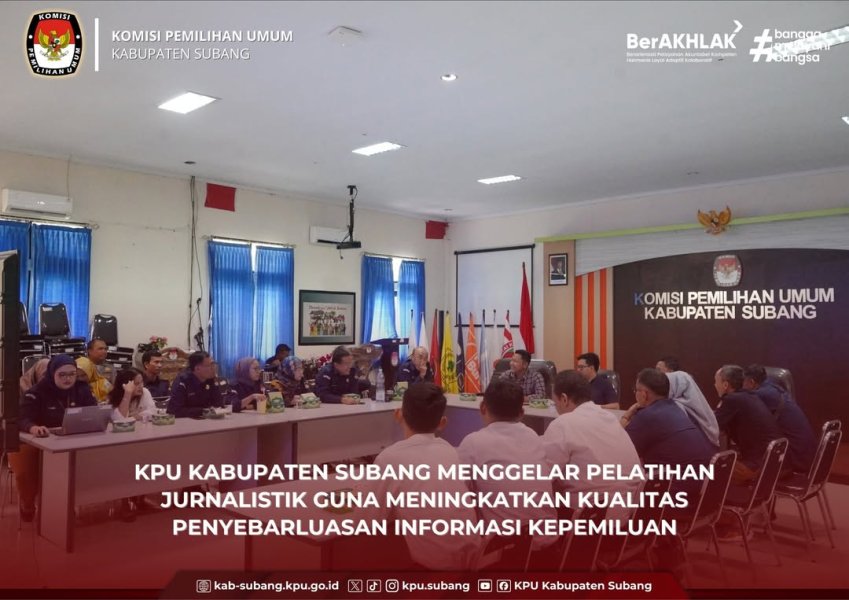 SUBANG - KPU Subang menggelar pelatihan jurnalistik di ruang aula pada hari Selasa, 11 November 2025. Pelatihan ini menghadirkan narasumber dari Mediatama dan Pasundan Ekspres. Kegiatan ini supaya setiap pegawai KPU diharapkan dapat membuat berita lebih informatif dan bisa memberikan manfaat untuk masyarakat. Setiap pegawai diberikan pemahaman terkait teknik pembuatan berita 5W + 1H. "Ke depan berita yang dibuat tidak hanya memberikan kegiatan yang ada di internal saja, tetapi lebih melibatkan narasuber seperti kegiatan coktas bersama masyarakat," ujar Komisioner KPU Subang, Ricky Permana. Ia menambahkan, kemampuan menulis berita merupakan keterampilan penting di era keterbukaan informasi. Dengan bekal ini, pegawai KPU diharapkan dapat menjadi perpanjangan tangan lembaga dalam menyampaikan pesan yang transparan, edukatif, dan membangun kepercayaan masyarakat terhadap penyelenggaraan pemilu. Melalui pelatihan jurnalistik ini, KPU Subang berkomitmen memperkuat peran pegawainya tidak hanya sebagai pelaksana teknis pemilu, tetapi juga sebagai penyampai informasi yang cerdas, tuntas, dan akurat kepada publik. ....