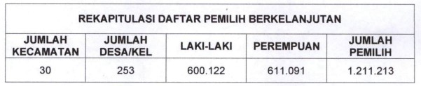 Kegiatan ini merupakan langkah penting dalam memastikan kesuksesan pelaksanaan demokrasi yang transparan dan adil. Dalam rapat tersebut KPU Kabupaten Subang menetapkan Rekapitulasi Daftar Pemilih Berkelanjutan Kabupaten Subang dengan rincian sebagai berikut: