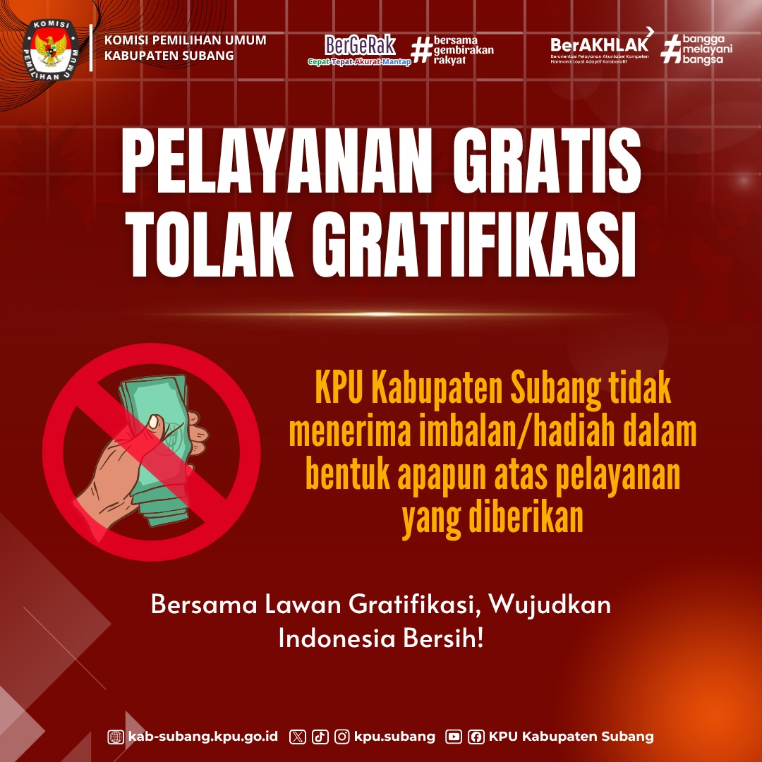 Subang - Komisi Pemilihan Umum (KPU) Kabupaten Subang berkomitmen kuat dalam mewujudkan tata kelola pemerintahan yang bersih, transparan, dan akuntabel melalui pembangunan Zona Integritas (ZI) sebagai bagian dari upaya reformasi birokrasi. Langkah ini merupakan bentuk nyata tekad KPU Subang untuk menjadi lembaga penyelenggara pemilu yang profesional, berintegritas, dan bebas dari praktik korupsi, kolusi, dan nepotisme (KKN).