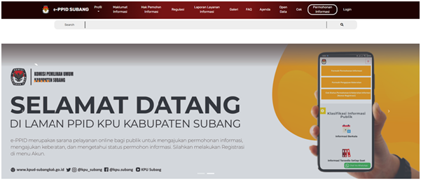 Pemohon dapat mengakses langsung website E-PPID KPU Kabupaten Subang melalui link https://subangkabppid.kpu.go.id/