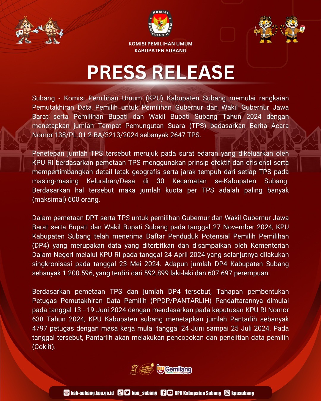 Kegiatan ini tentunya untuk hadapi penyebaran hoaks dan demi mewujudkan Pemilu dan Pilkada 2024 yang sukses, serta mendukung literasi digital, KPU Provinsi/Kabupaten/Kota di Jawa Barat tanda tangani komitmen bersama Diskominfo Jabar Saber Hoaks. Jabar Saber Hoaks atau Jabar Sapu Bersih Hoaks memandang bahwa menuju tahun 2024 hoaks kepemiluan diprediksi dapat terjadi, maka dalam meminimalisir perpecahan masyarakat perlu langkah bersama yang konkrit.